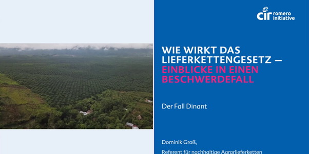 Doch wie kann man sich diesen Prozess in der Praxis vorstellen? Was beinhaltet eine Beschwerde und wie erfolgt das Zusammentragen und Aufbereiten von Informationen? Diese und weitere Fragen erörtert Dominik Groß, Referent für Menschenrechte und Klimaschutz in Agrarlieferketten, von der CIR.