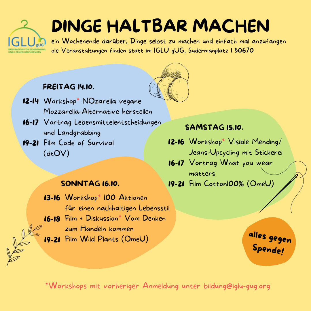 MEHR ERFAHRENEin Wochenende darüber, Dinge selbst zu machen und einfach mal anzufangen. Das gemeinnützige IGLU im Kölner Agnesviertel veranstaltet Mitte Oktober…