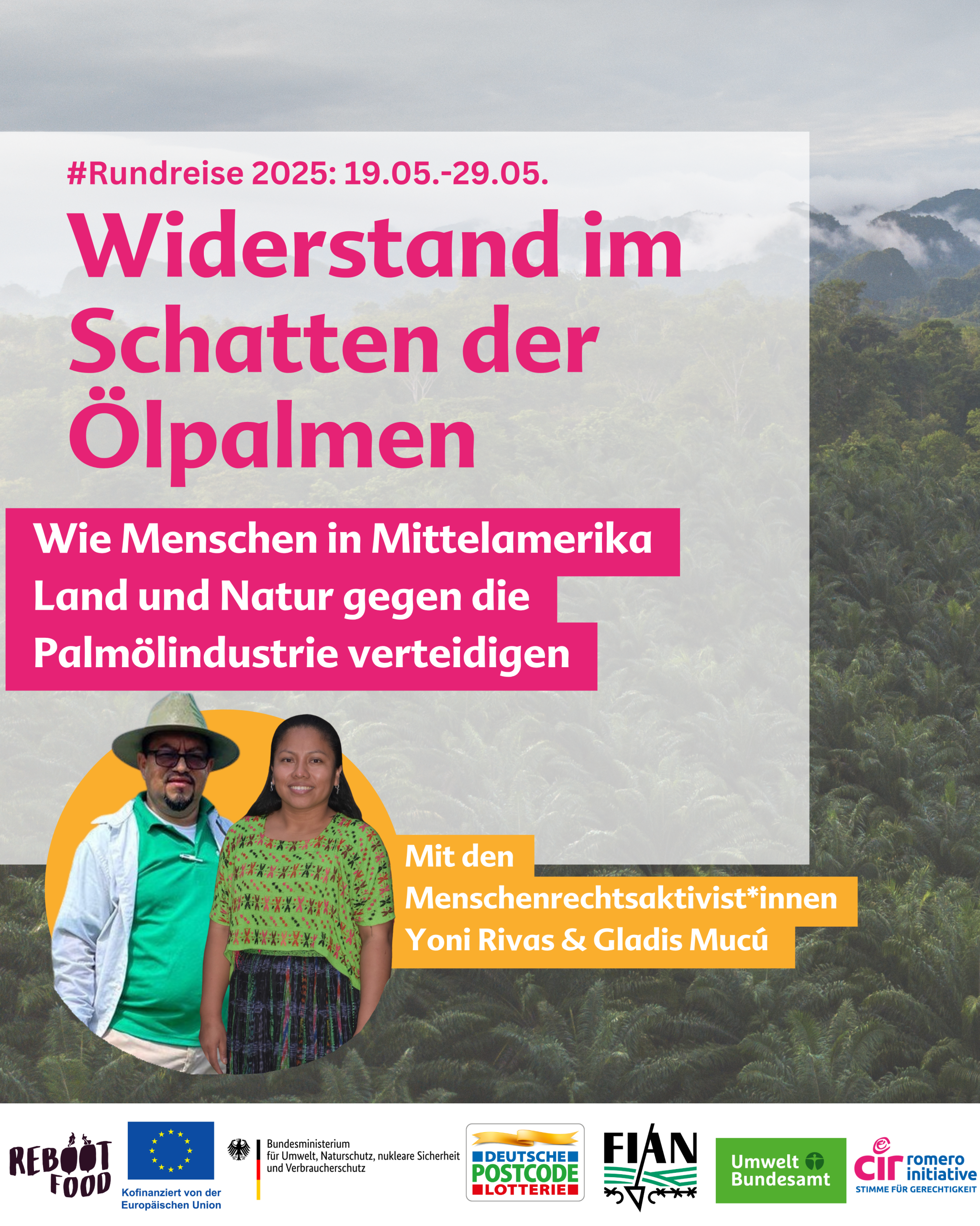 Der Besuch von Gladis Mucú (Guatemala) und Yoni Rivas (Honduras) ist Teil der Speakers Tour der Christlichen Initiative Romero e.V. (CIR). Das Seminar wird geleitet von FIAN Deutschland.