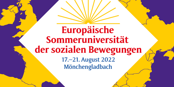 Es soll ein spannender Sommer 2022 in Mönchengladbach werden: Nach den letzten Europäischen Sommeruniversitäten der sozialen Bewegungen 2014 in Paris und 2017 in Toulouse treffen wir uns 2022 wieder in Deutschland!