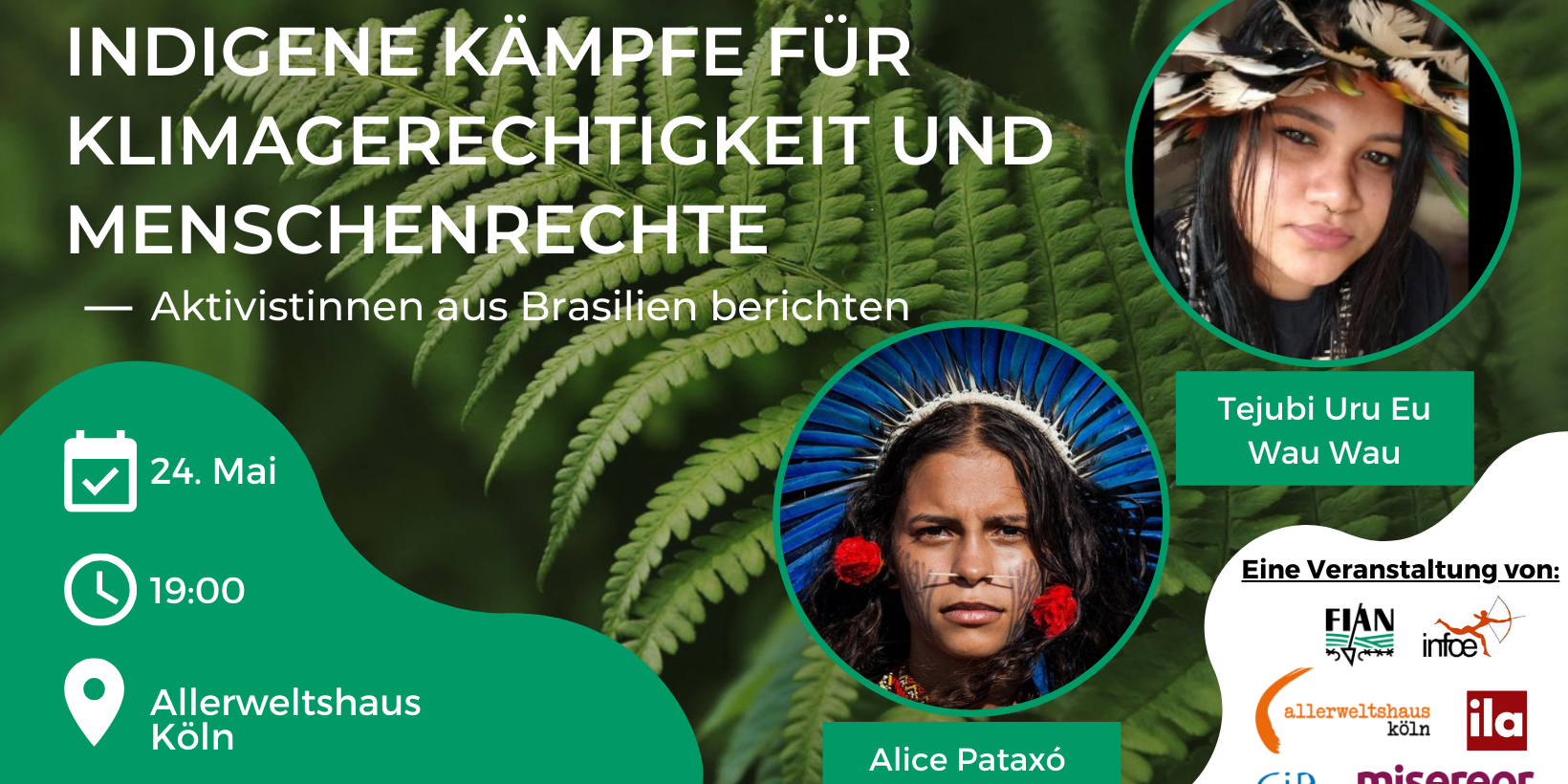 Doch die betroffene indigene Bevölkerung wehrt sich und fordert ihre Rechte national und international ein. Zwei Vertreterinnen dieses Einsatzes sind Alice Pataxó und Tejubi Uru Eu Wau Wau aus Brasilien. Die 20-jährige Alice studiert in Bahía, erreicht mit ihrem Smartphone über 250.000 Follower*innen auf Social-Media und sprach schon auf der Weltklimakonferenz 2021 in Glasgow. Tejubi macht sich mit ihren 21 Jahren als indigene Anführerin für nachhaltige Projekte zum Schutz von Land und indigener Landrechte stark. Beide sind ein Sprachrohr einer neuen Generation indigener Aktivist*innen.