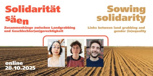 In dieser digitalen Veranstaltung wollen wir gemeinsam mit Vertretenden aus zivilgesellschaftlichen Bewegungen beleuchten, wie Landraub mit globaler Ungleichheit, der Klimakrise und vor allem mit struktureller Geschlechterungerechtigkeit verknüpft ist.