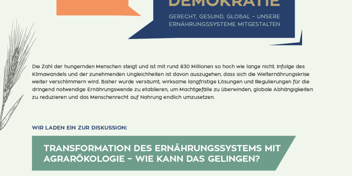 Teil 1 unserer dreiteiligen Dialogreihe „Ernährung & Demokratie“. Weitere Infos & Termine folgen.